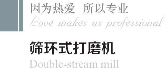 Double-stream mill consists of feeding system and milling system, the feeding system consists of vibrating feeder, magnetic eparator, heavy objects separator ,and the milling system consists of machine seat, screen ring, vane-wheel, main shaft and driving unit etc.
